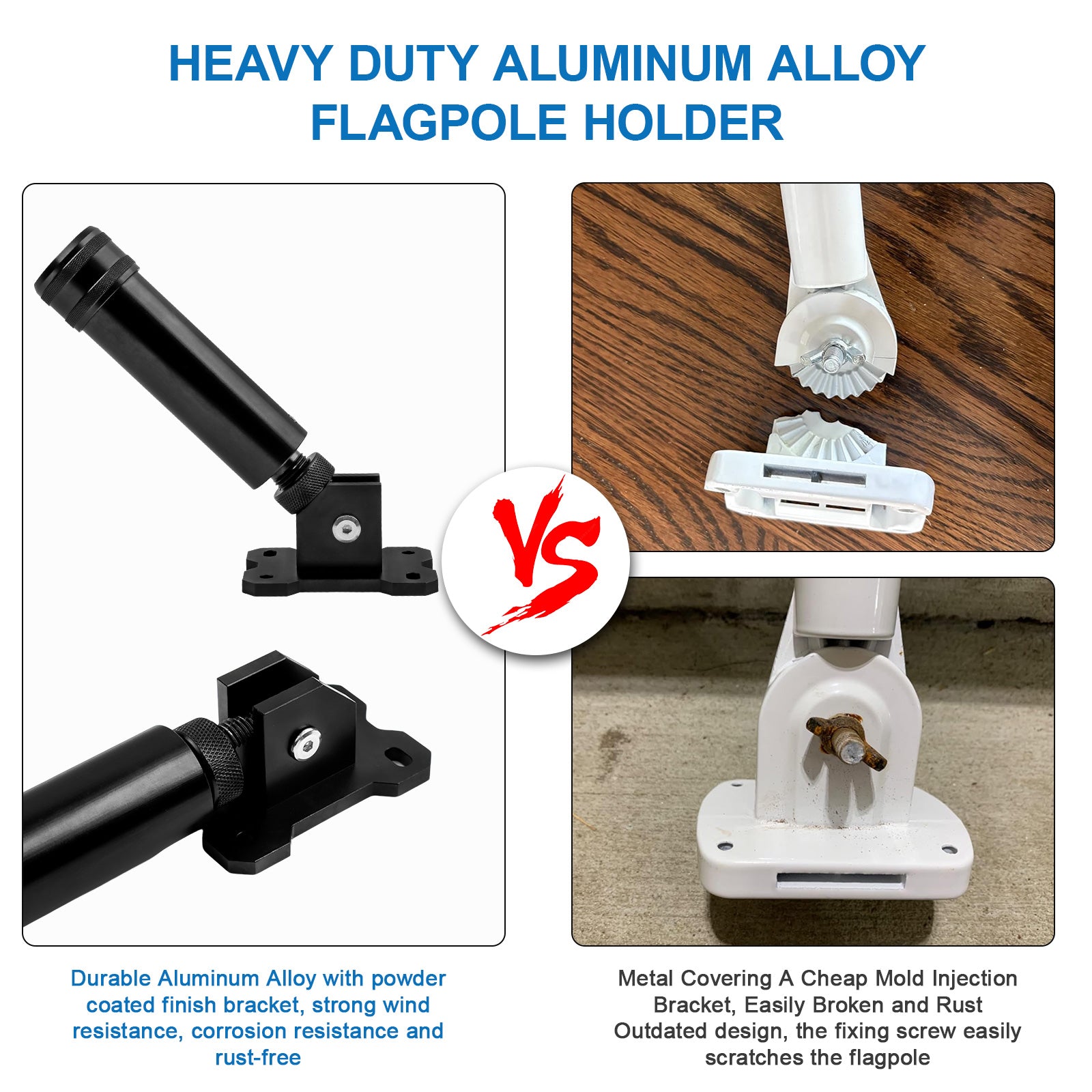 - Heavy Duty Bracket - This flag pole mount is made of heavy-duty Aluminum Alloy, ensuring extreme sturdiness and durability. HIBLE Flag pole holder for house is corrosion-resistant, and it can withstand all kinds of outdoor weather without rusting.