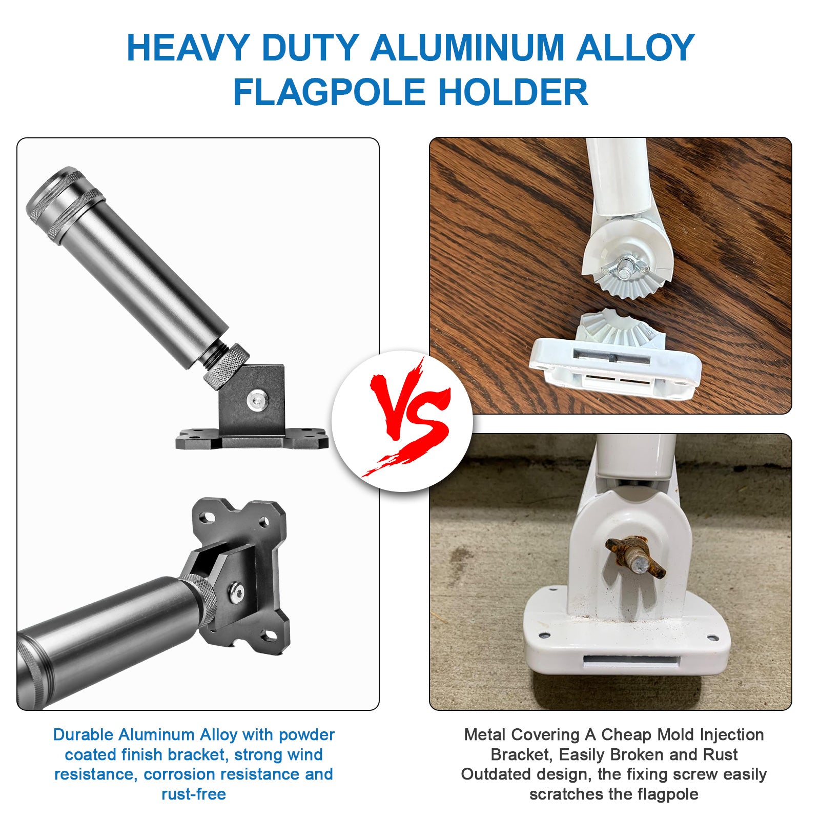 - Heavy Duty Bracket - This flag pole mount is made of heavy-duty Aluminum Alloy, ensuring extreme sturdiness and durability. HIBLE Flag pole holder for house is corrosion-resistant, and it can withstand all kinds of outdoor weather without rusting.